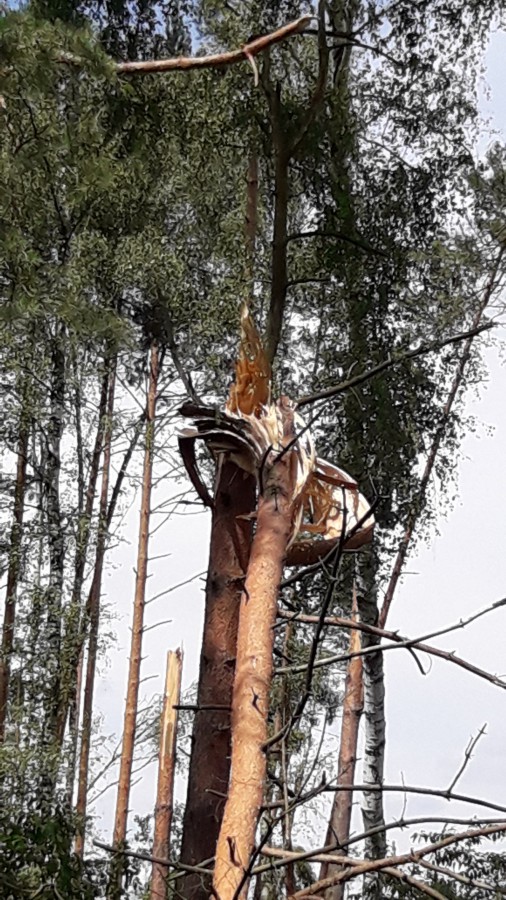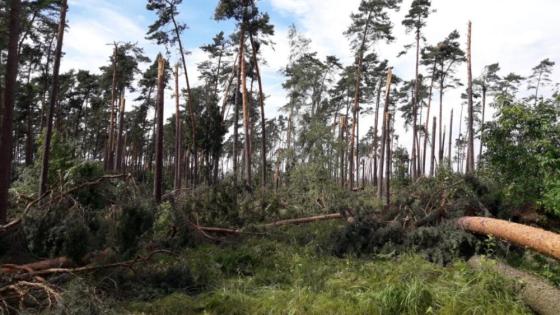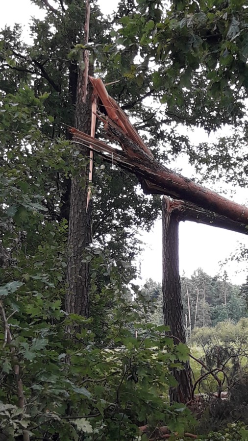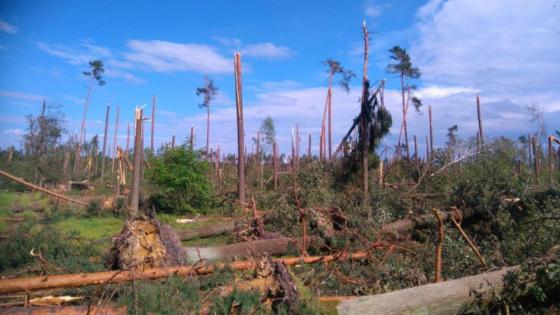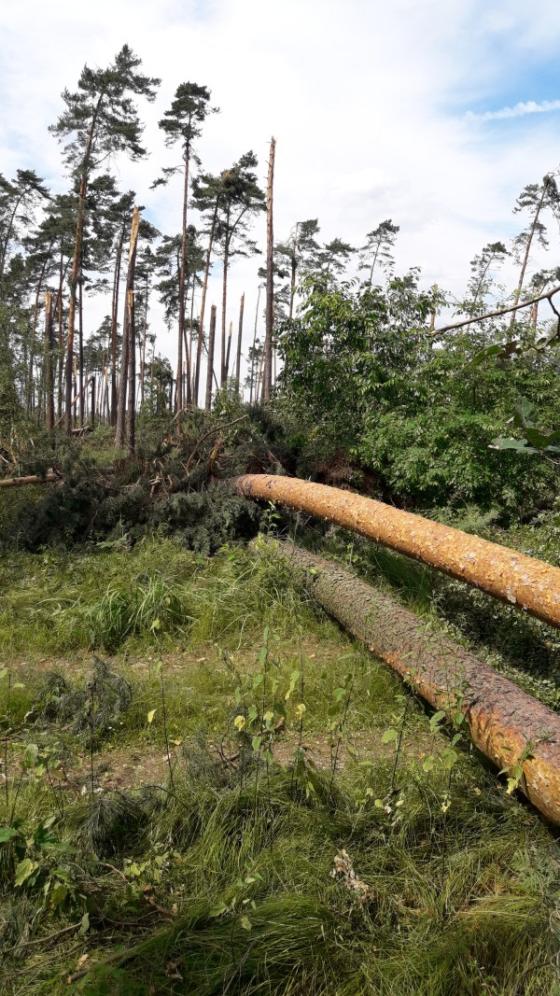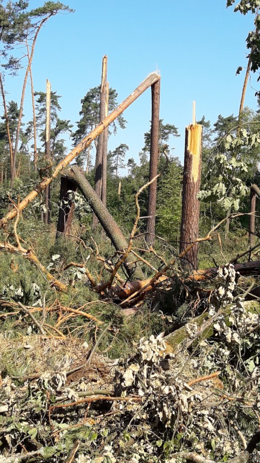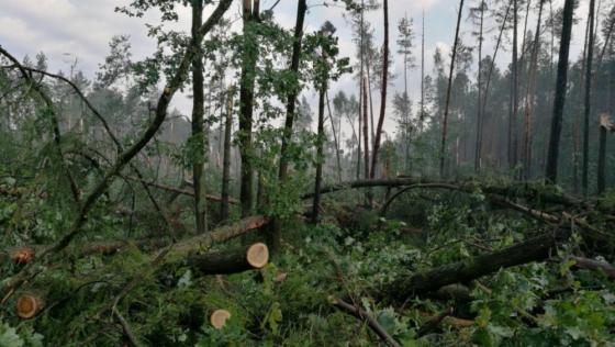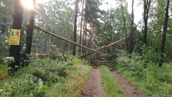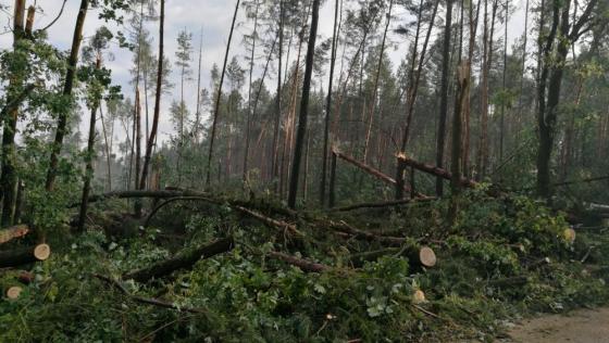 Wystarczyło kilkanaście minut, by w piątek 7. lipca 2017 r. gwałtowny wiatr o sile huraganu powalił i połamał drzewa na powierzchni około 1 500 ha na trasie Dziergowice – Kuźnia Raciborska – Nędza – Szymocice – Górki Śląskie.