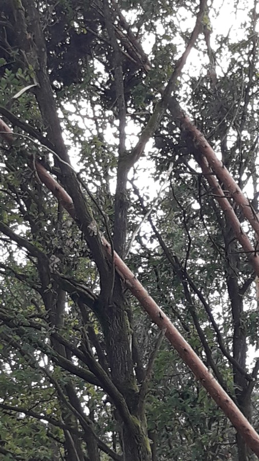 Warto porównać zdjęcia z dnia 25. czerwca, czyli sprzed huraganu oraz z 20. lipca. Oba zdjęcia są wykonane z podobnej wysokości, chociaż są nieco przesunięte względem siebie. Orientację na pewno ułatwi charakterystyczny kształt plantacji modrzewiowej, która po części również ucierpiała wskutek huraganu.